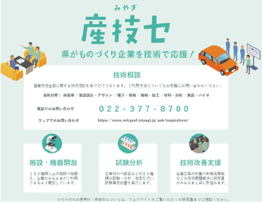 地域のものづくり企業の技術的な困りごとにお応えする宮城県の工業関係試験研究機関です。